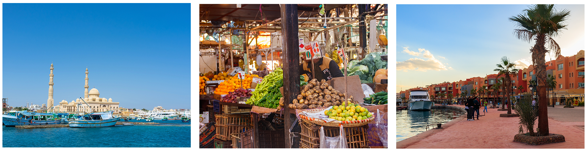 Det tidligere fiskerleje Hurghada har udviklet sig til en af Rødehavets førende turistbyer med et livligt byliv og en rig kulturarv. Byens centrum er omgivet af flere kystområder, herunder Makadi Bay, Sahl Hasheesh og El Gouna, der tilbyder en bred vifte af ferieoplevelser.