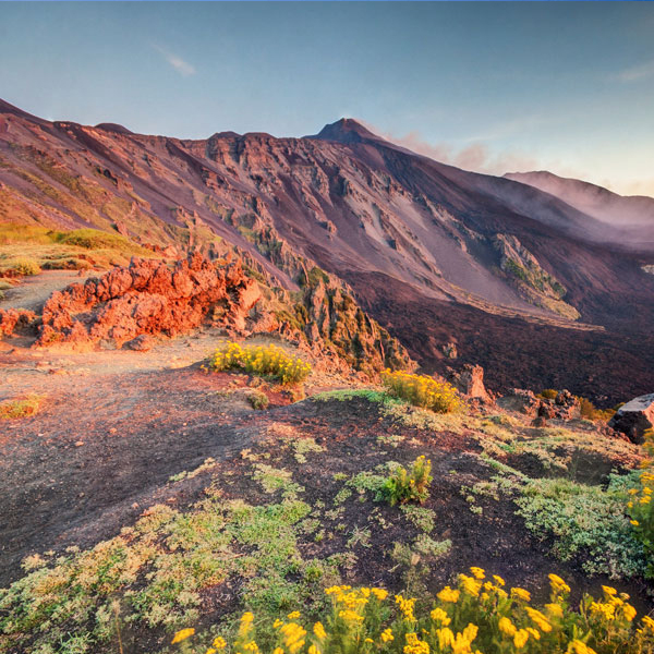Start rejsen fra de fredelige landsbyer ved foden af Etna og tag dig tid til at nyde de smukke omgivelser, som du stille og roligt bevæger dig op ad vulkanens skråninger. Her vil du blive mødt af frodige skove, frugtplantager og fantastiske udsigter over det glitrende Middelhav.