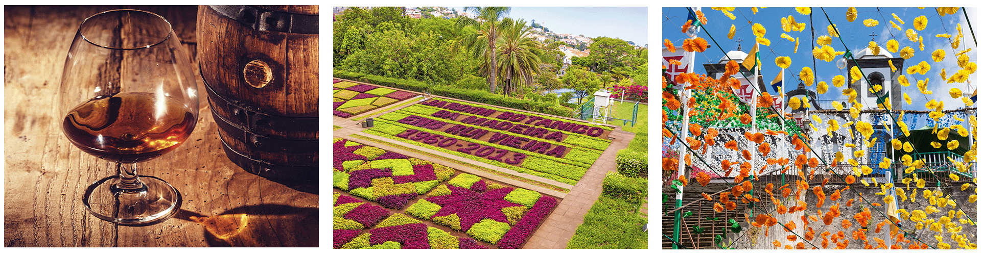 Vin. Madeira er kendt for sin unikke vinttradition, efter at have været en central mellemstation for skibene, der sejlede frem og tilbage mellem den Nye Verden, Afrika og Indien i 1600-/1700-tallet. På Madeira solgte de derfor store mængder vin til handelsmændene, der stoppede på øen. Udforsk de charmerende vingårde og lær om de forskellige druesorter, der anvendes til at lave den unikke Madeira stærke vin. Besøg vinfabrikken Barbeito, en lille familiedrevet vinfabrik siden 1946. Tag med på vinsmagning af dejlig Madeiravin - fra de søde og fyldige til de friske og delikate vine.