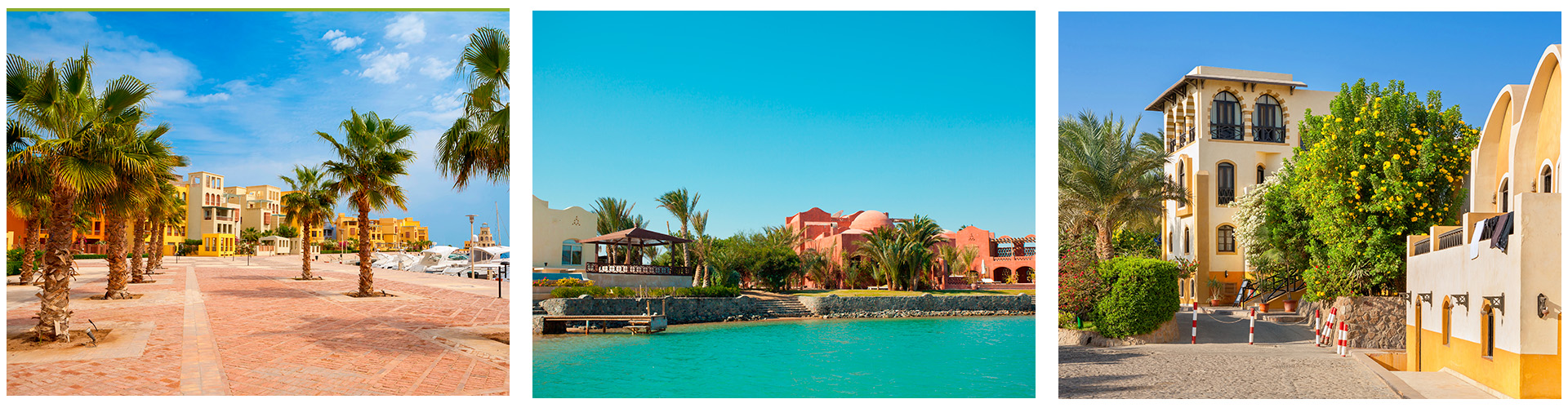 En livlige by tilgængelig for alle, der ønsker at nyde en afslappende ferie. El Gouna lever op til høje forventninger fra skandinaviske rejsende, der søger sol, natur, historie og aktiviteter. Gaderne og pladserne er hyggelige, og det er let at komme rundt.