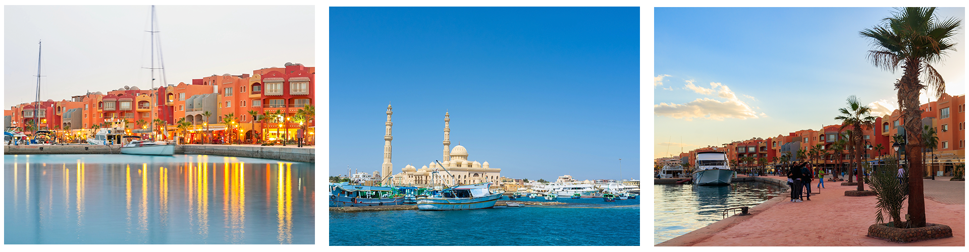 Det tidligere fiskerleje Hurghada har udviklet sig til en af Rødehavets førende turistbyer med et livligt byliv og en rig kulturarv. Byens centrum er omgivet af flere kystområder, herunder Makadi Bay, Sahl Hasheesh og El Gouna, der tilbyder en bred vifte af ferieoplevelser.