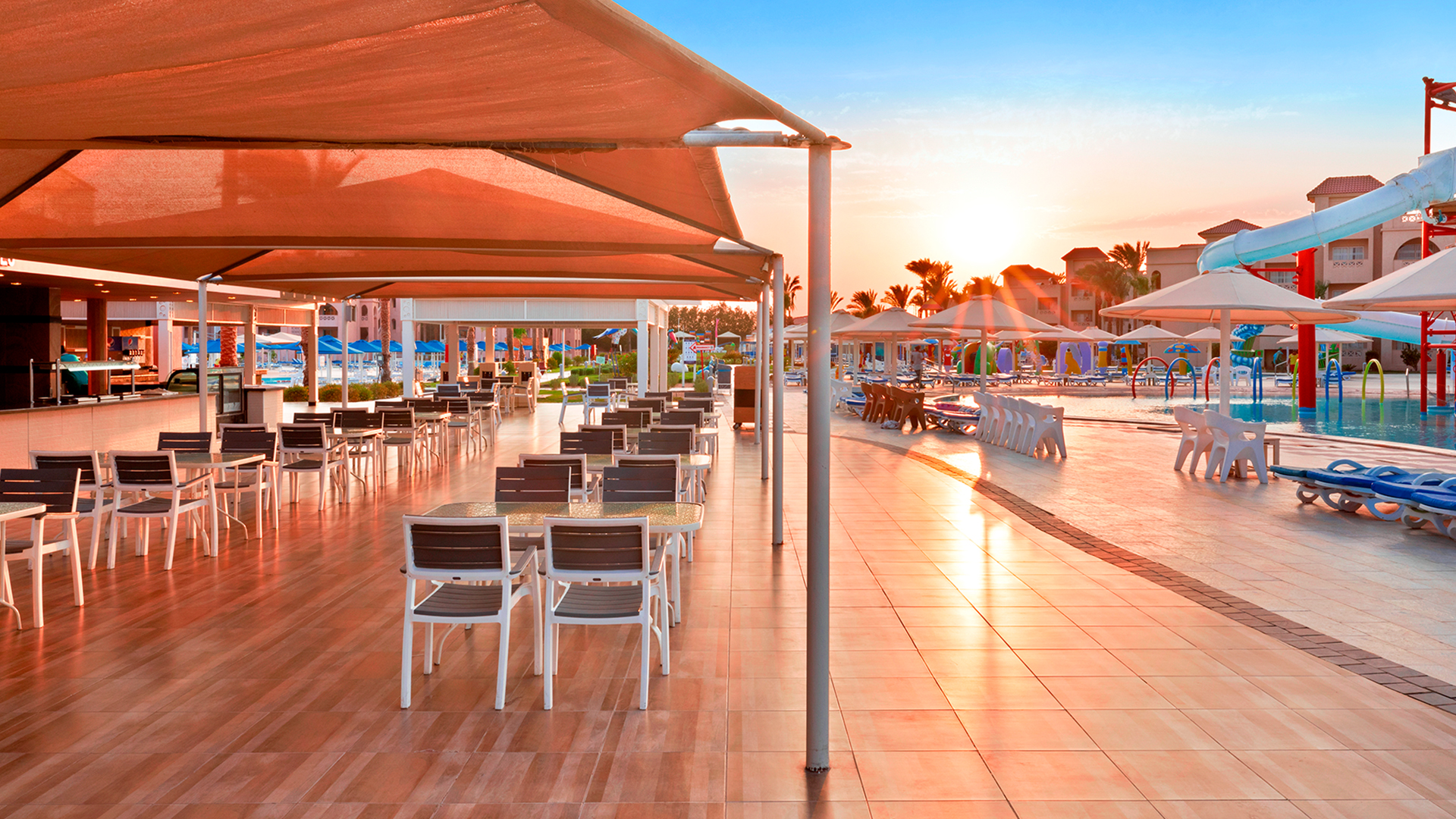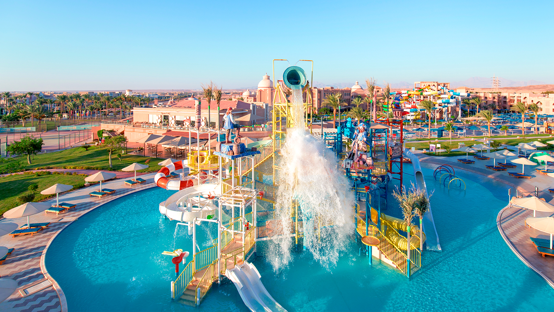 - Albatros Aqua Park: 3 pools med vandrutsjebaner, 5 pools for voksne og 1 børnepool