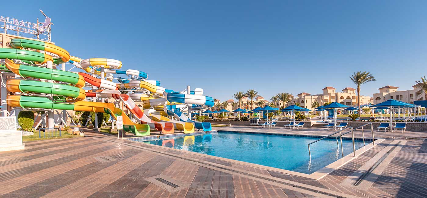 Velkommen til Pickalbatros Aqua Park Resort – et familievenligt hotel med vandland. Hotellet har en god placering uden for Hurghada centrum, kun 500 meter fra stranden. Et hotel, der inviterer hele familien til et fantastisk ophold i eventyrlige Egypten. Med en indbydende atmosfære og et stort udvalg af aktiviteter for både store og små, der søger en solrig ferie i smukke omgivelser.