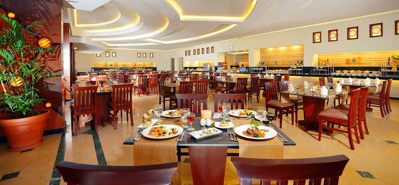 All Inclusive på Pickalbatros Aqua Park Resort inkluderer måltider i alle hotellets restauranter og barer samt strandbaren hos søsterhotellet.