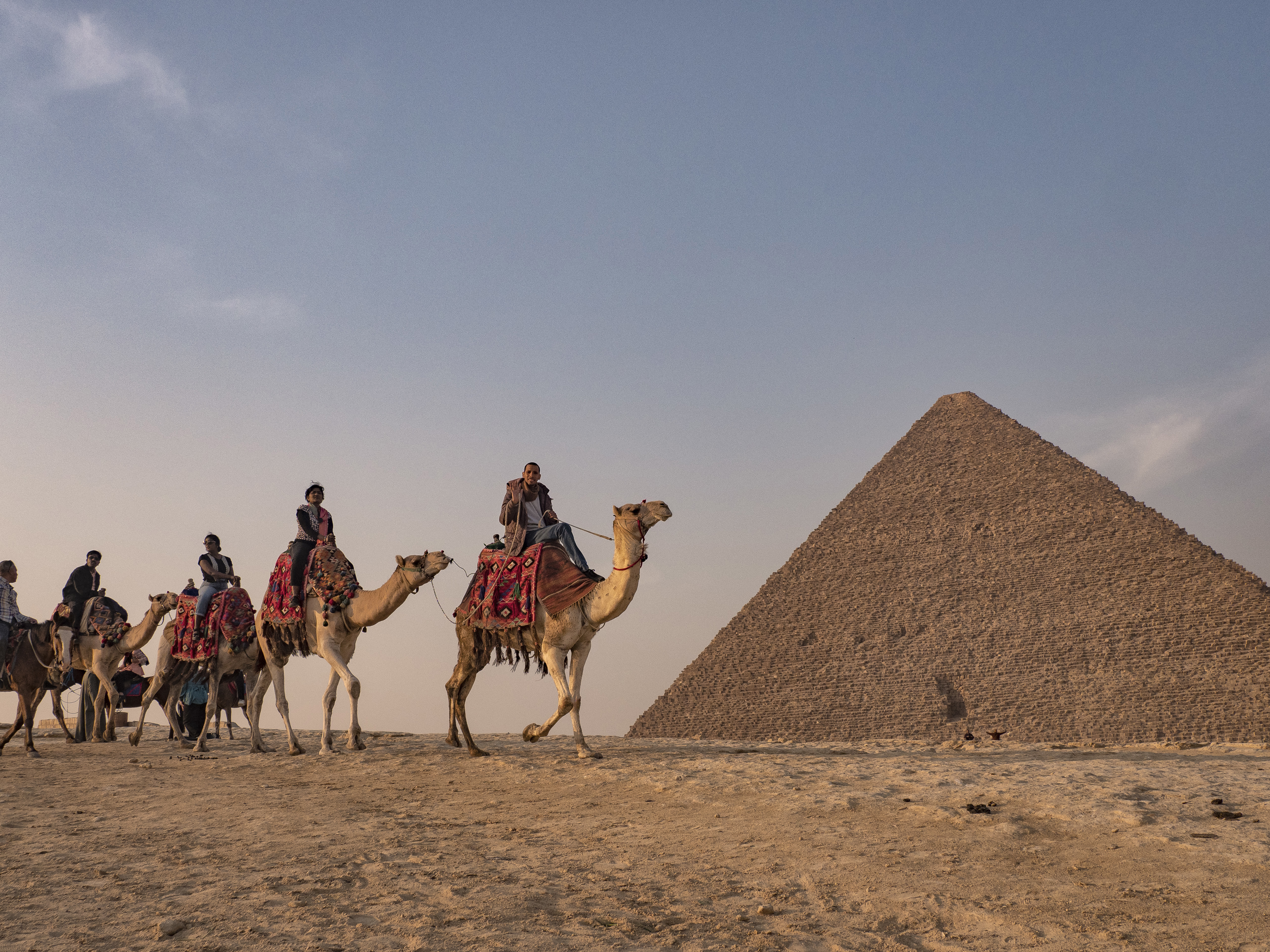 Efter morgenmad og udtjekning fra båden flyver vi til Cairo, hvor vores guide venter. Vi besøger de ikoniske pyramider og Sfinksen i Giza, inden vi spiser frokost. Om eftermiddagen udforsker vi Grand Egyptian Museum og Khan el-Khalili-bazaren. Overnatning på 5* Baron Hotel i Cairo eller tilsvarende.
