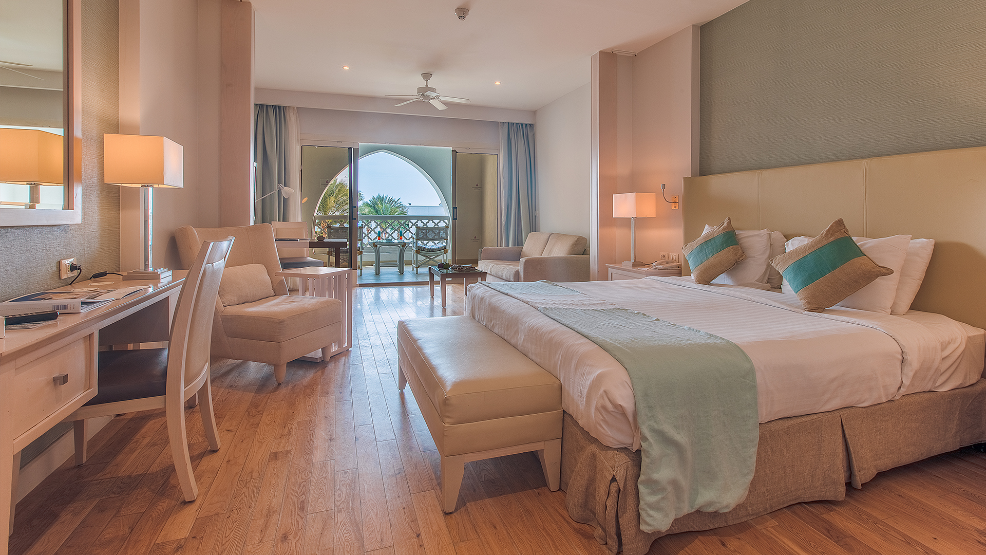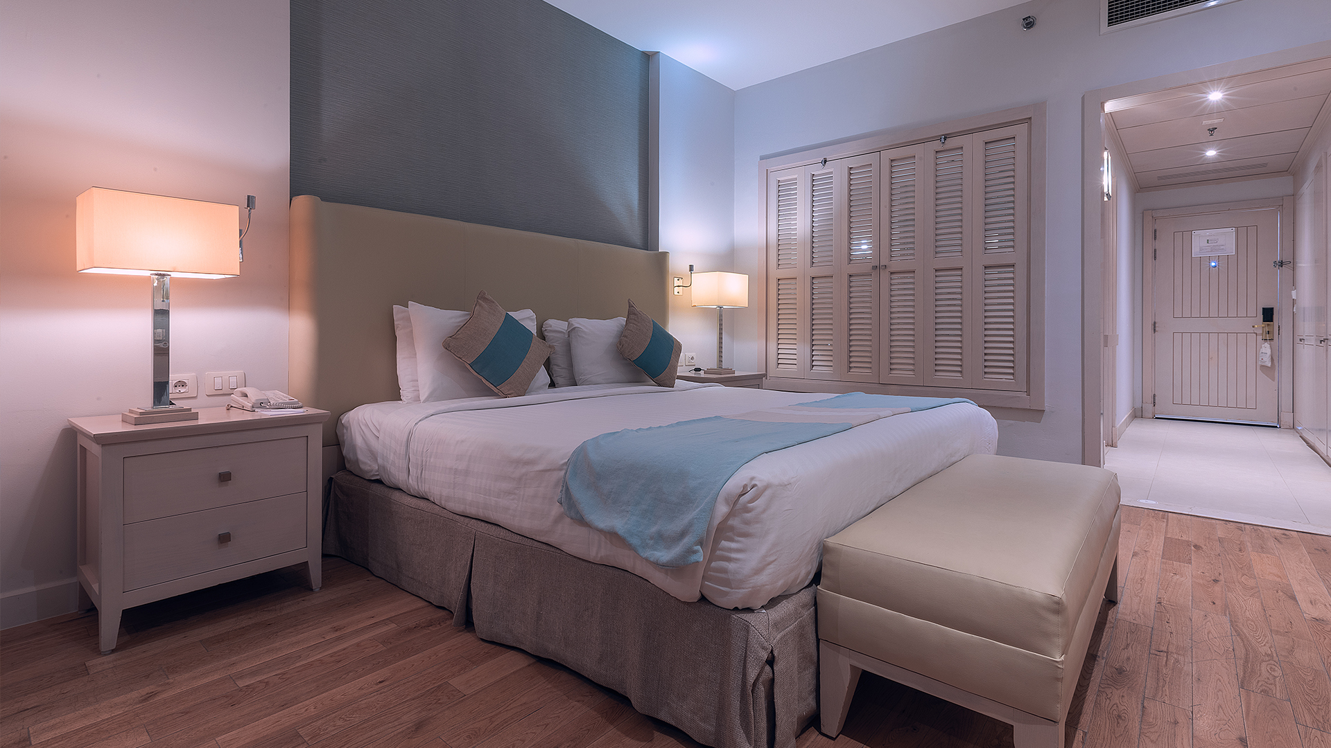 Kan bestilles som standardværelse eller med pool- eller havudsigt.