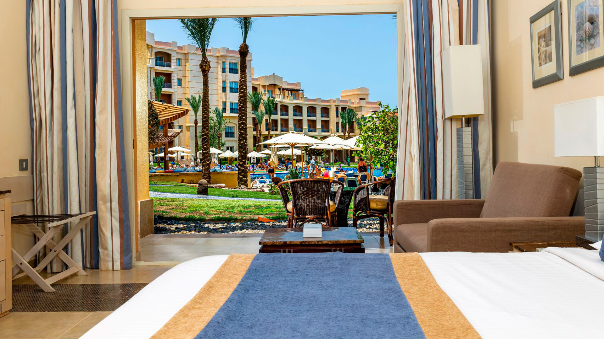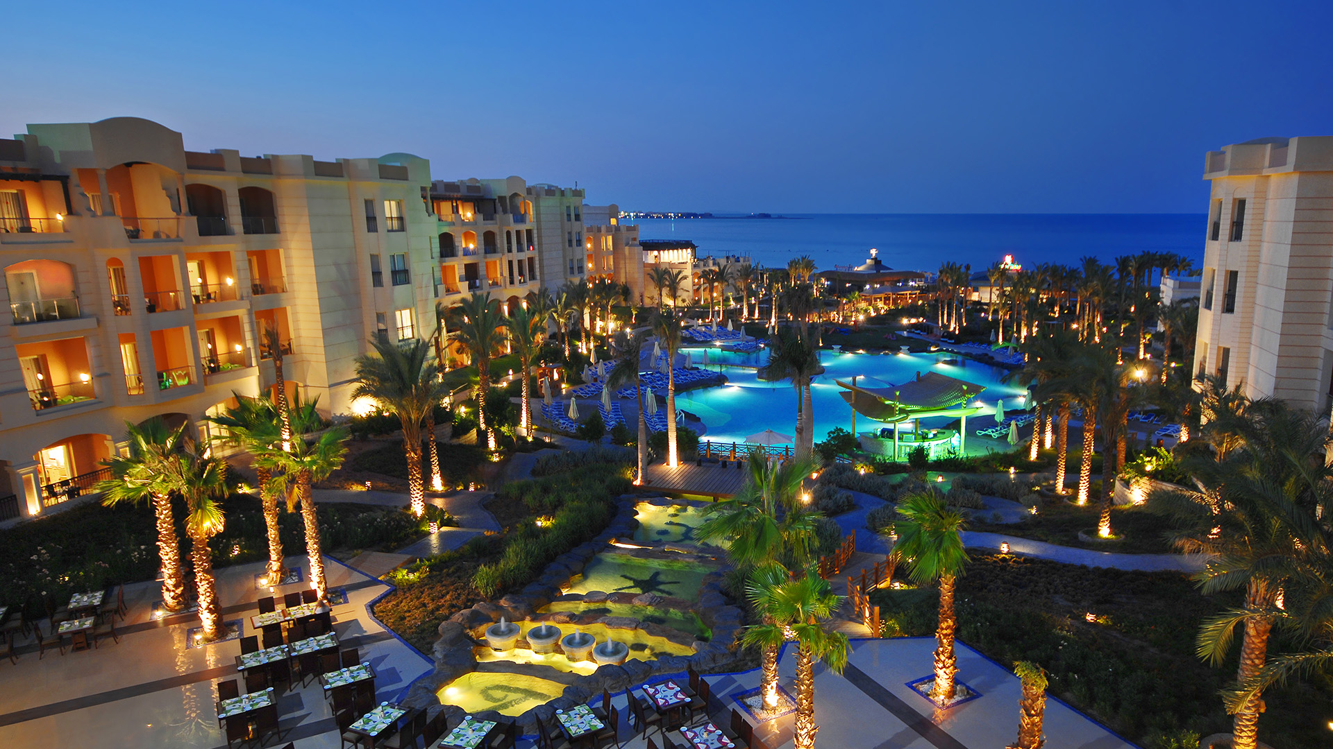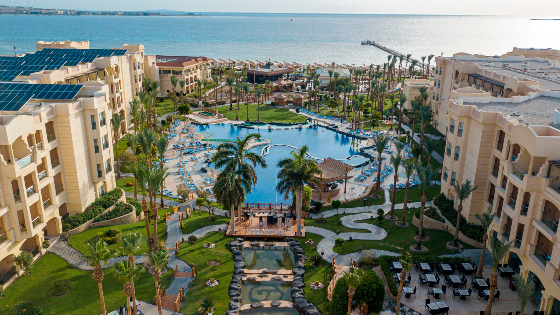 Velkommen til Tropitel Sahl Hasheesh - eksklusivt familiehotel ved havet Tropitel Sahl Hasheesh har en perfekt beliggenhed lige ved stranden og det krystalklare Røde Hav. Her venter en uforglemmelig ferie for både store og små med spændende aktiviteter, smukke omgivelser og kort afstand til den gamle bydel. Det er et stort hotel bygget op omkring de indbydende poolområder. Der er noget for enhver smag: en børnepool med vandrutsjebaner og spil for hele familien, spabade og panoramaudsigt fra infinity-poolen og en stor hovedpool i hjertet af hotellet, hvor der er underholdning og sjov fra morgen til aften. Foretrækker du saltvand, bølgebrise og sand? Fra Tropitel Sahl Hasheesh har du direkte adgang til en privat sandstrand med en naturlig saltvandslagune fuld af farverigt marineliv. Her kan du leje en cykel, prøve strandsport eller slentre - eller jogge - langs den 12,5 kilometer lange promenade, der strækker sig hele vejen til den charmerende gamle bydel med dens restauranter og barer. Tropitel Sahl Hasheesh inviterer alle til en begivenhedsrig fest fuld af aktiviteter og afslapning. Gå i det veludstyrede fitnessrum med det venlige personale, spil tennis, beachvolley eller bordtennis. Når du vil slappe af, kan du nyde total forkælelse i hotellets luksuriøse spa. Her tilbydes massage, vandbehandlinger, tyrkisk bad, dampbad og sauna. Dit ophold er Ultra All Inclusive, så du er klar til en bekymringsfri ferie. Nyd velsmagende måltider i hotellets fem restauranter, både buffet og à la carte er inkluderet. Og vælg mellem et bredt udvalg af drinks og snacks i de otte barer, der ligger spredt rundt omkring på hotellet. Læs mere om, hvad der er inkluderet under »Mad og drikke«. Tropitel Sahl Hasheesh er et eksklusivt familiehotel for alle gæster, der ønsker en god base for deres ferie ved Rødehavet. Faciliteter Afstande Strand/pool Restauranter/Barer Internet Børn Aktiviteter Andet Værelser Tropitel Sahl Hasheesh har indbydende, lyse og moderne værelser. Handicappede værelser er tilgængelige på forespørgsel. Dobbeltværelse til 2-3 personer (kan også bookes som enkeltværelse) Dobbeltværelse til 2 voksne og 2 børn (2-11 år) = 1 dobbeltseng + 1 enkeltseng Hvis du vil have et større værelse med 4 senge, skal du vælge en anden værelsestype. Standard familieværelse til 2-3 voksne og 2 børn (min. 1 barn skal være under 12 år) Faciliteter (alle værelser) Handicapvenlige værelser er tilgængelige efter anmodning. Mad og drikke Dit ophold på Tropitel Sahl Hasheesh er med Ultra All Inclusive - din ferie bliver en leg, når alt er inkluderet, og du ikke skal betale ekstra for mad og drikke i løbet af din ferie! All Inclusive starter normalt fra kl. 14.00 på ankomstdagen og slutter ved check-out kl. 12.00 på afrejsedagen. Drikkevarer serveres kun i glas og ikke i hele flasker. NB! Spisetider og -steder kan ændres på grund af ugunstige vejrforhold eller uforudsete omstændigheder. Måltider The Palm & Waves Resturant (internationalt køkken, serveres som buffet) À la carte-restauranter (bordreservation påkrævet og inkluderet én gang om ugen) Il Pomodoro - autentisk italiensk restaurant Mexicansk strandrestaurant Mumbai - indisk køkken Dolma Bahçe - autentiske smagsoplevelser fra Tyrkiet, Levanten og Middelhavet (mod betaling) Drikkevarer og snacks Inkluderet er lokale drikkevarer: vand, sodavand, juice, kaffe, te, øl, vin og drinks - serveres kun i glas, ikke i flasker. Og er inkluderet fra kl. 10.00 - 00.00, uden for disse tidspunkter opkræves der betaling for drikkevarer. Importerede alkoholiske drikkevarer, friskpresset juice uden for måltiderne og tyrkisk kaffe er mod betaling. Aqua Park Bars Pool Kiosk - Lobby Bar & Terrace - åben 24/7 Andre ting, der er inkluderet i Ultra All Inclusive: Ikke inkluderet i feriens pris: Dresscode Lægehjælp Faciliteter for bevægelseshæmmede