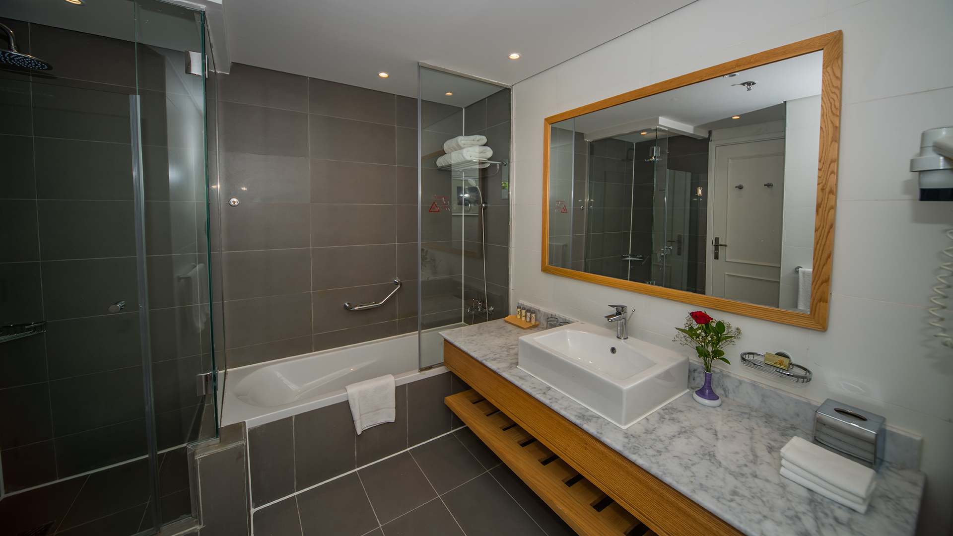 Alle værelser har terrasse/balkon og er indrettet med aircon, elkedel, safetybox, minibar, strygejern/bræt og badeværelser med toilet, brus.