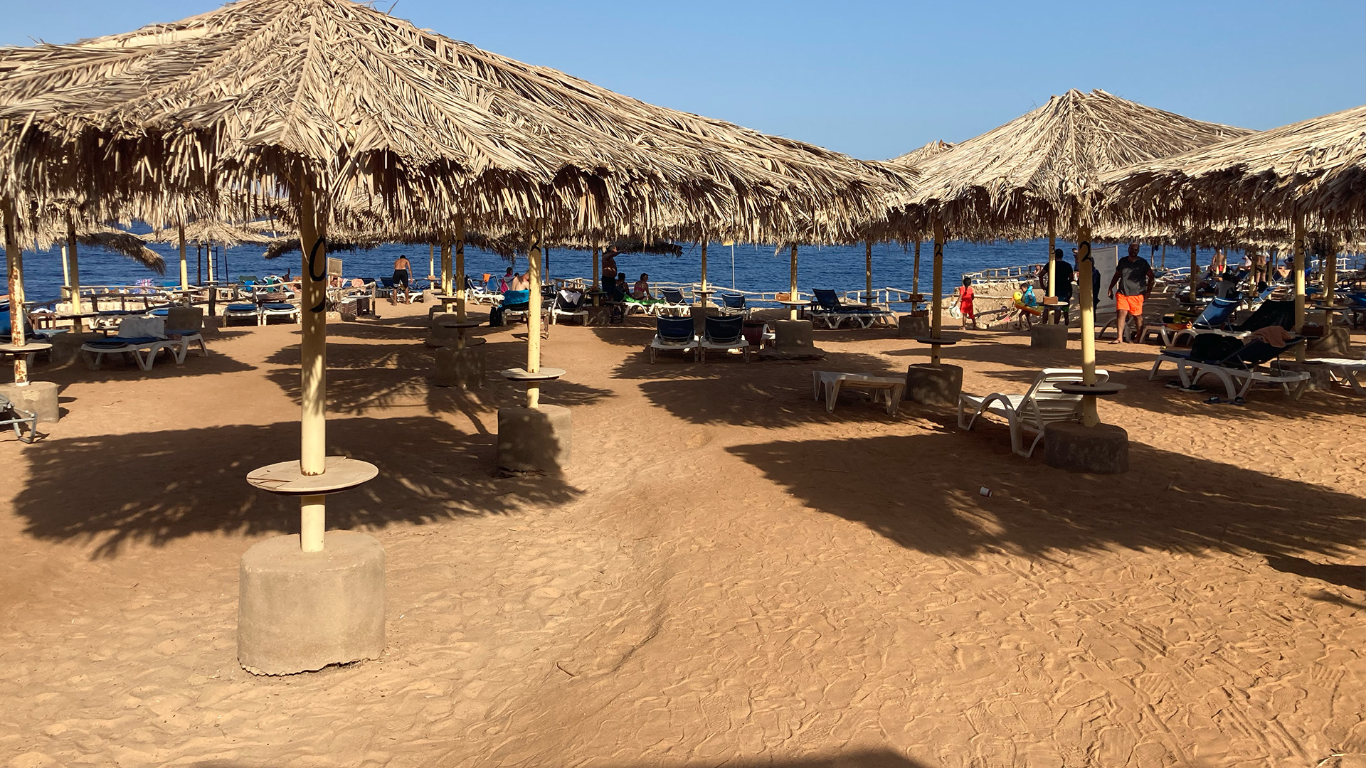 Sharm Reef´s private strandområde ligger ca. 900 meter fra hotellet. Der er gratis shuttlebus service mellem hotellet og stranden, den sidste tur tilbage til hotellet er ca. på 18:00. Stranden ligger i Pinky Wall, som er et smukt fredet område, og er bygget med trapper ned til havet, her anbefales svømmefærdigheder. Som gæst på Sharm Reef kan du frit benytte solsengene og parasollerne på stranden. All inclusive er ikke tilgængelig på stranden, men der er en restaurant, hvor du kan købe mad og drikkevarer. Med en fantastisk udsigt over Det Røde Hav og gode snorklemuligheder bliver dagen på stranden eventyrlig og indholdsrig.