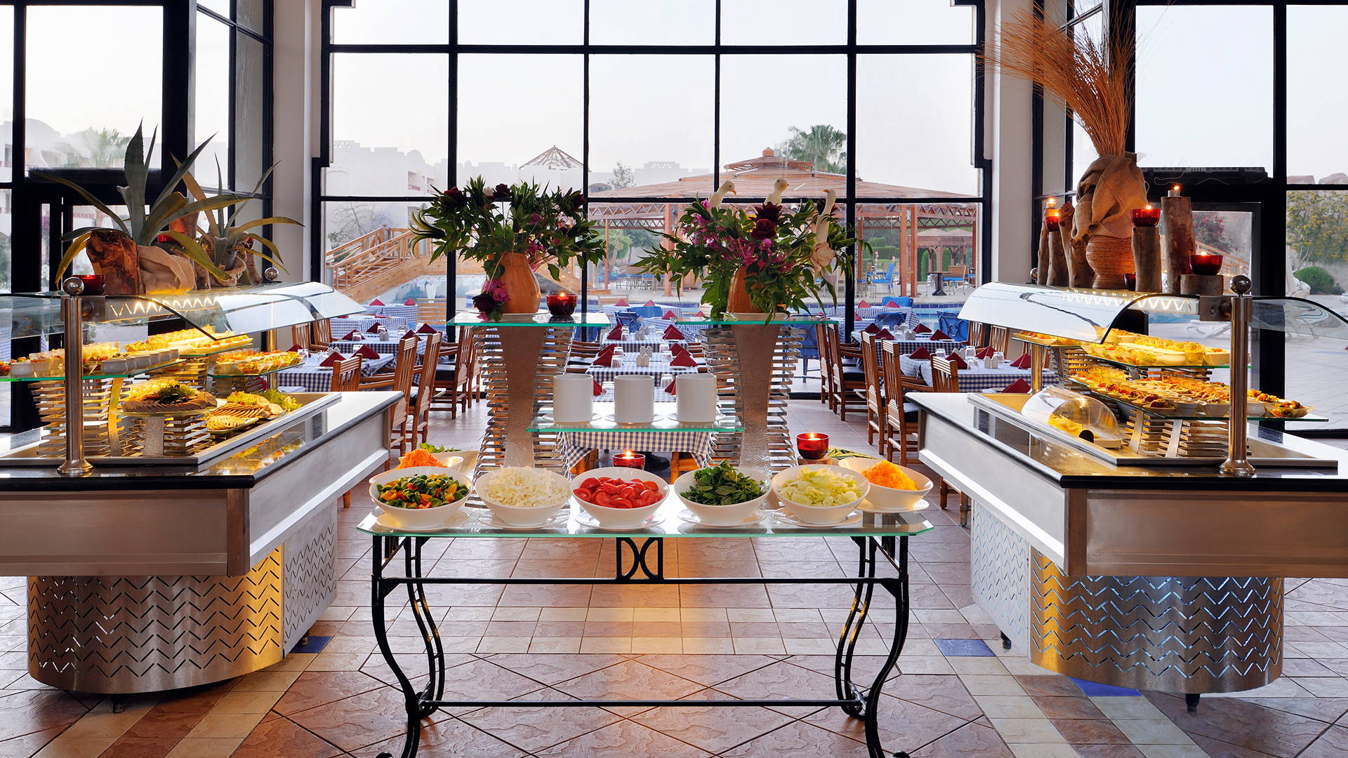 Naama Bay Promenade Mountain har en buffetrestaurant, der serverer et varieret og godt udvalg af internationale retter til morgenmad, frokost og middag.