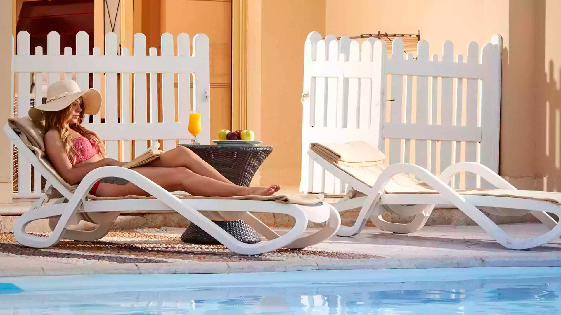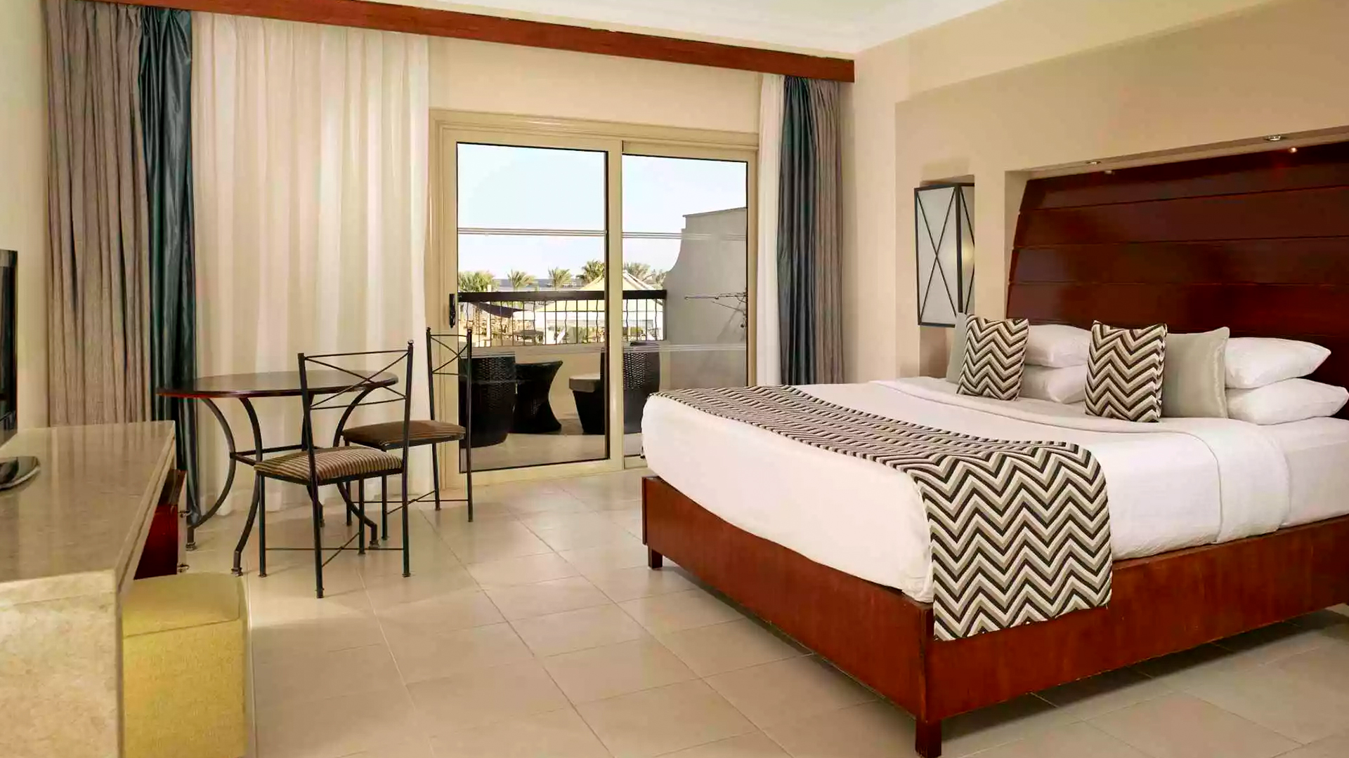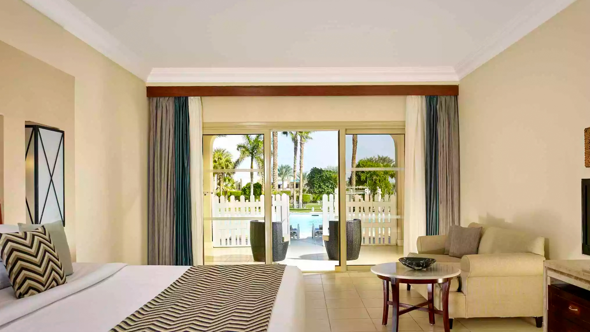 Værelset har egen terrasse og direkte adgang til fælles pool fra terrassen.