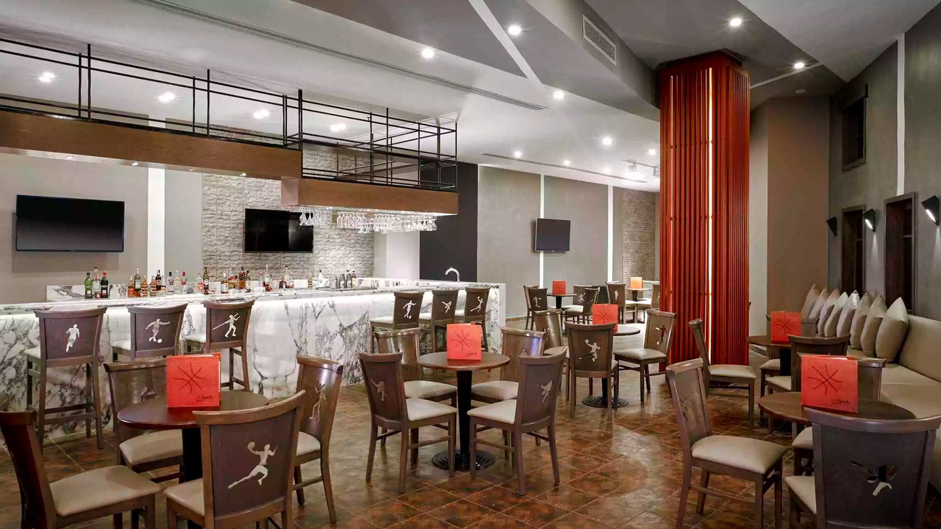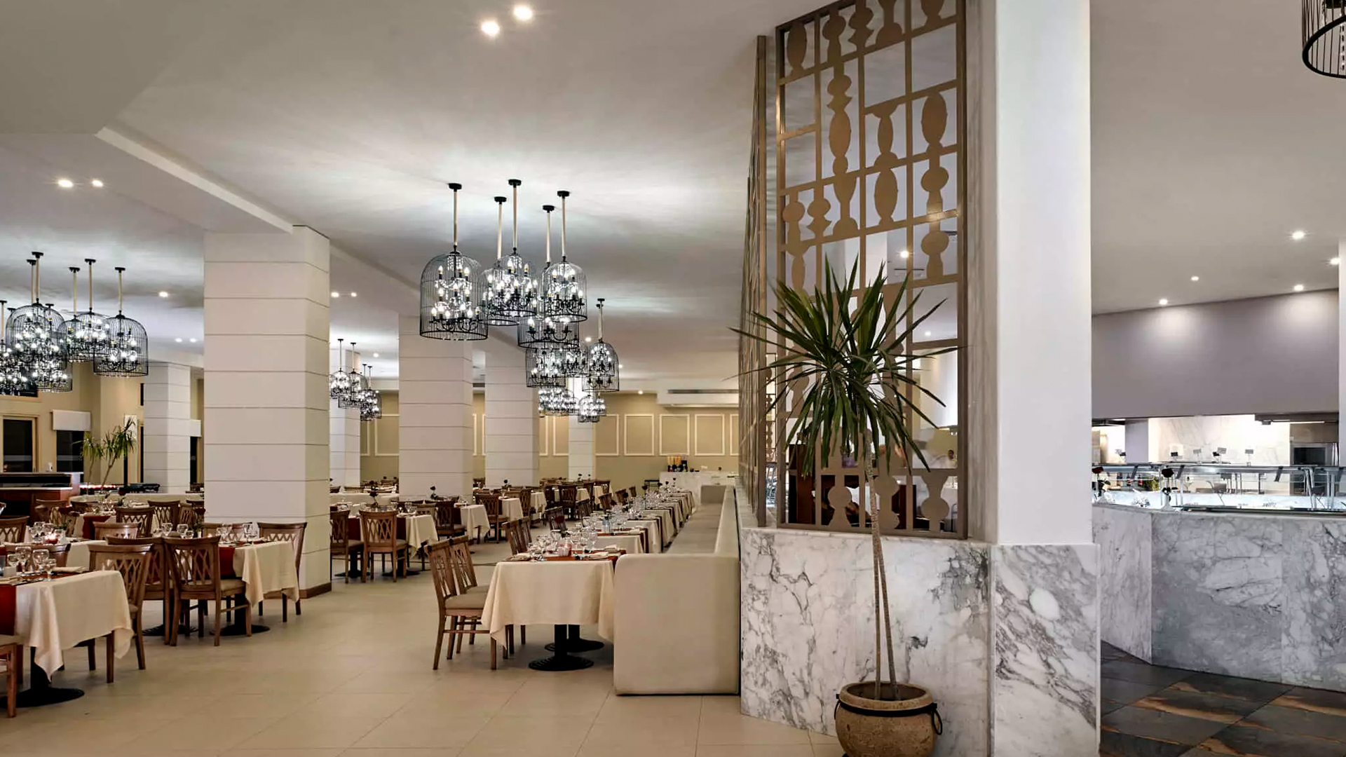 Hotellet er et all inclusive hotel og har et væld af barer og restauranter placeret godt på hotellet store område. Om man er udendørs eller indendørs er der altid mulighed for at få stillet sulten eller tørsten.