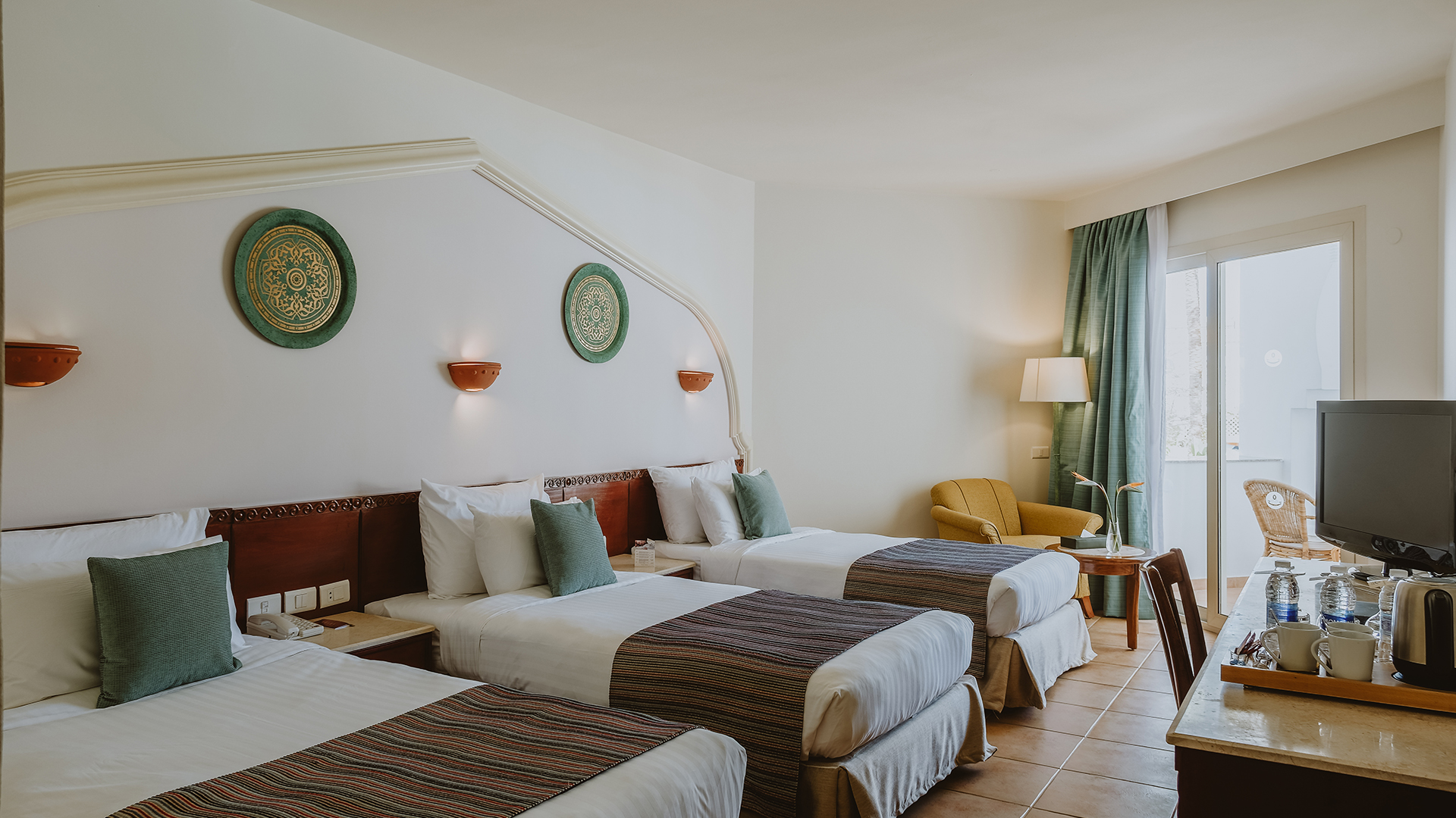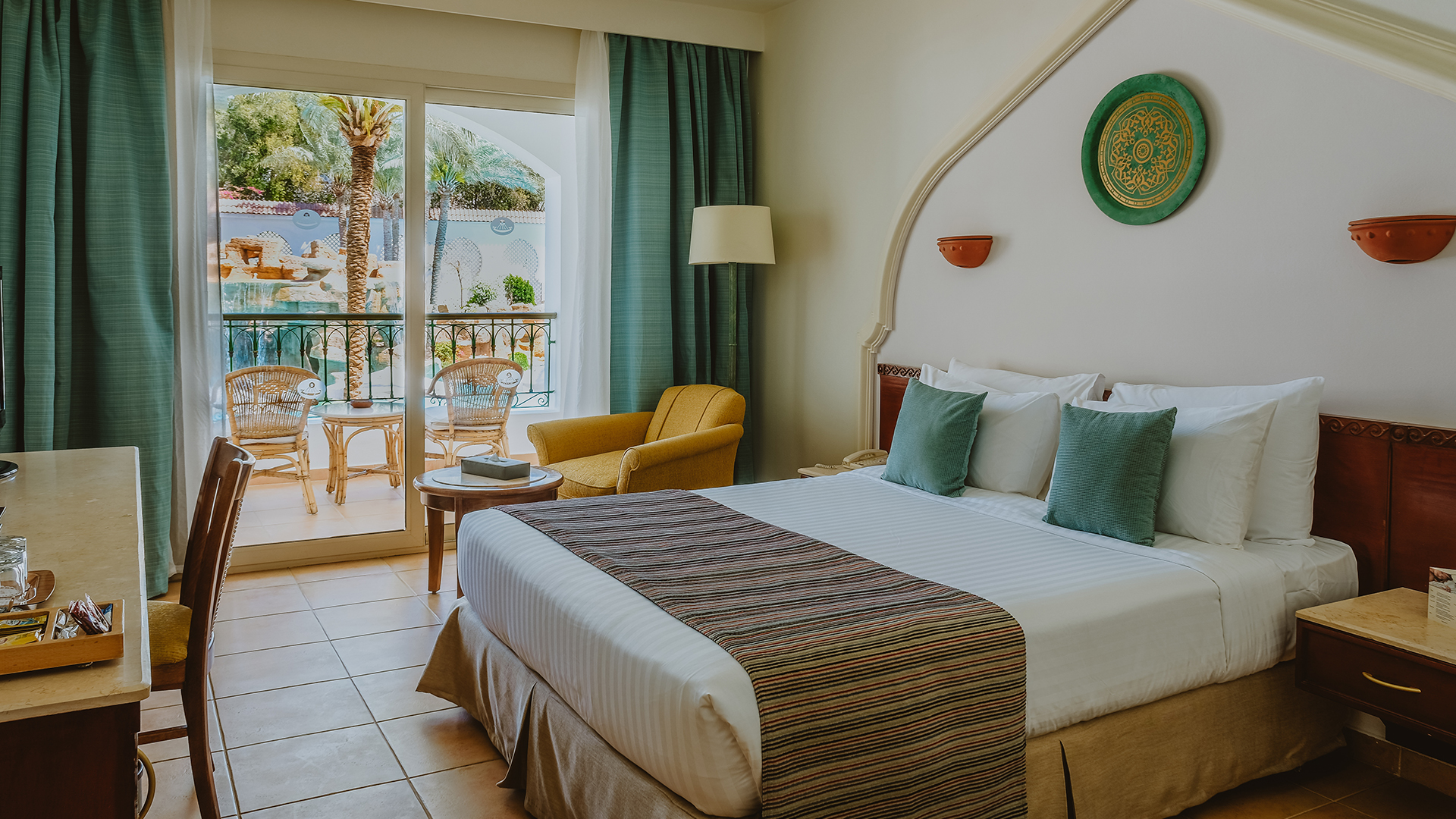 Med kingsize-seng eller to enkeltsenge (120 cm) og balkon eller terrasse med siddeområde. Kan bookes med udsigt til baggård/have eller pool.
