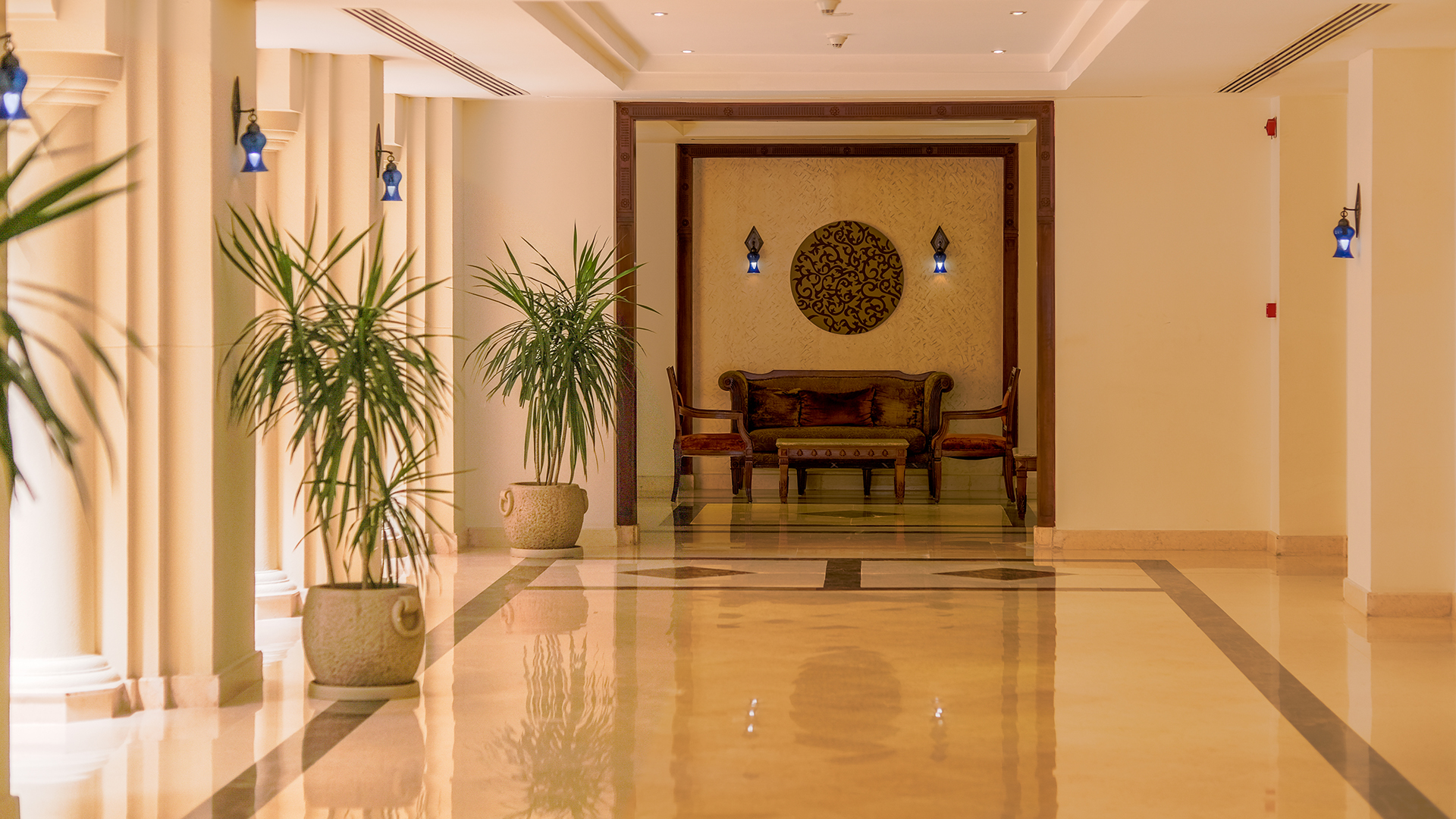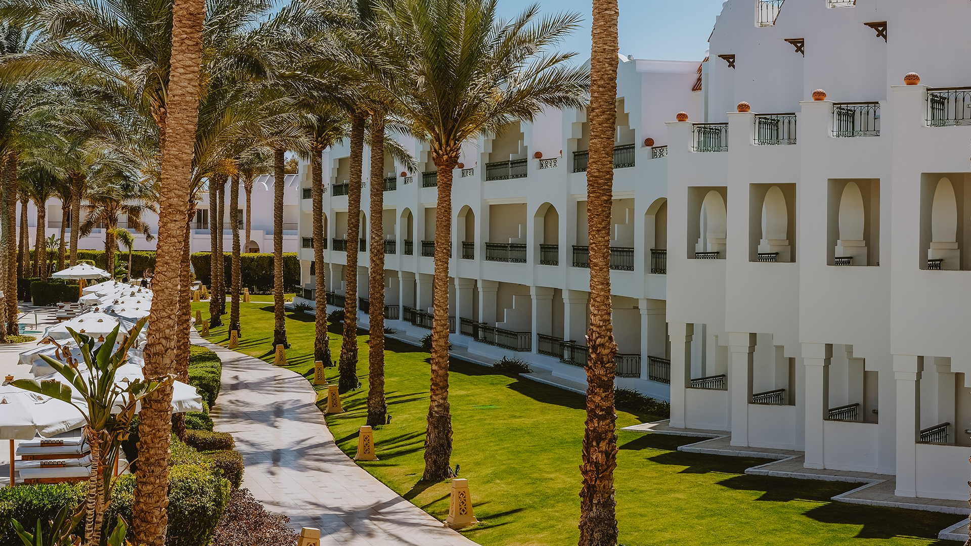 Hotellet ligger smukt i Ras Nasrani og indbyder voksne gæster til en rolig ferie i smukke omgivelser. Et godt valg for dem, der stiller høje krav til komfort og service. Baron Palms Resort ligger kun et stenkast fra den private sandstrand. Nyd den fredelige atmosfære blandt palmer og brusende bølger. Lige ud for stranden ligger husrevet, som byder på fantastiske snorkeloplevelser i det krystalklare vand, der er fyldt med farverigt liv under overfladen. I hjertet af hotellet finder du et indbydende poolområde med to store pools og vandfald, hvoraf den ene er opvarmet om vinteren. Slap af i solen på de behagelige liggestole, og køb forfriskninger i barerne ved poolen og på stranden.  For ekstra forkælelse kan du besøge hotellets spa- og wellnesscenter med jacuzzi, sauna, dampbad og et udvalg af behandlinger og massage (mod betaling). Hvis du er på udkig efter mere aktivitet, er der masser af muligheder for beachvolley, fodbold og gode løbe- og vandrestier langs stranden. Dit ophold er med All Inclusive, og du kan nyde varierede og velsmagende retter fra hele verden i hotellets restauranter. Hvis du vil have en helt særlig aften, kan du bestille bord i Paradise Restaurant med en nøje udvalgt menu og levende lys. Baron Palms Resort har en aldersgrænse på 16 år og er et perfekt valg for par eller venner, som vil slappe af og nyde fred og ro - uden børn.   Faciliteter  Afstande Strand/Pool   Adgang til internet Restauranter/barer Aktiviteter Andre faciliteter   Værelser Baron Palms Resort har rummelige og lyse værelser med fokus på komfort. Alle værelser har daglig rengøring. Værelser til personer med særlige behov er tilgængelige efter anmodning. Værelse til 1-3 personer Faciliteter (alle værelser)   Mad og drikke Dit ophold på Baron Palm Resort er All Inclusive, som omfatter alle daglige måltider i hotellets restauranter samt snacks og drikkevarer i hotellets barer.  OBS! Spisetider og -steder kan ændres på grund af ugunstige vejrforhold eller uforudsete omstændigheder.  Generelle regler: Der må ikke medbringes mad eller drikkevarer på værelset og i korridorerne. Måltider Tiran World Class Cuisine – buffetrestaurant Paradise Pool Restaurant & Bar  Til à la carte kræves en bordreservation, som kan bestilles i receptionen inden kl. 12.00 samme dag.   Snacks  Siesta Beach Restaurant & Bar La Veranda Terrasse    Drinks og drikkevarer  Drikkevarer er inkluderet fra kl. 10.00 - 00.00 og serveres kun i glas, ikke i flasker. Lokale drikkevarer er inkluderet: Vand, sodavand, juice, kaffe, te, øl, vin og cocktails/drinks. Der serveres vand på flaske i alle restauranter under frokost og middag. Rendezvous Lobby Bar – 24/7   Ikke inkluderet i All Inclusive    Vigtige oplysninger  Påklædningskode.  Medicinsk rådgivning Faciliteter for personer med nedsat mobilitet