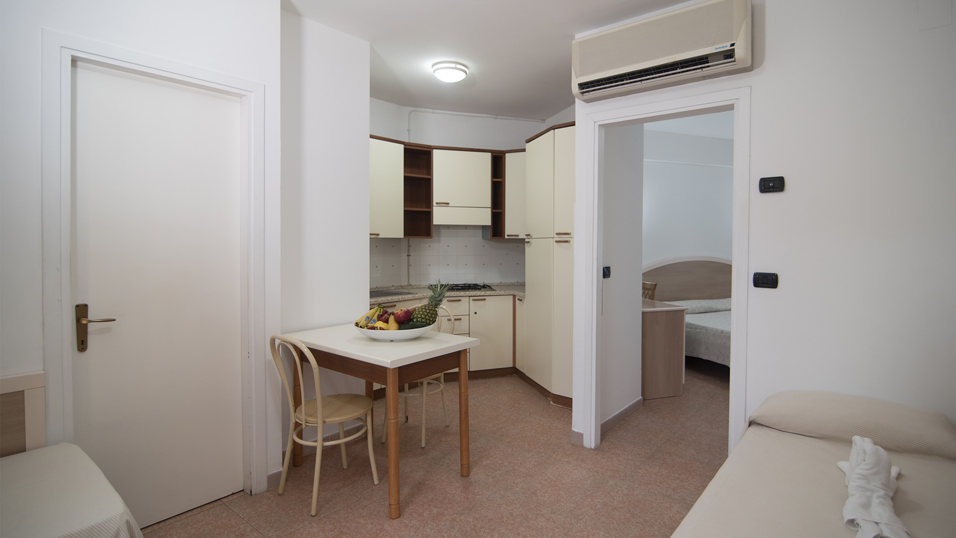 2-værelses lejlighed: 1 soveværelse med dobbeltseng eller to enkeltsenge samt opredning på sovesofa i opholdsstuen.
