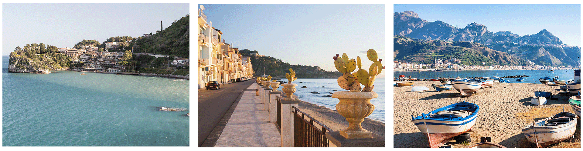 Amisols rejsemål er centreret omkring den frodige by Taormina, der ligger sig op til bjergsiden. Her bugner det med duftende citrontræer, kunstneriske hoteller og kirker, et gammelt græsk amfiteater, samt restauranter, caféer og butikker af enhver art. Bor du oppe på bakken, tager du svævebanen til stranden, som ligger 200 meter længere nede, hvor der også er fine hoteller og spisesteder at vælge imellem. Umiddelbart nord og syd for Taormina, er der to andre feriesteder, Letojanni og Giardini-Naxos, som er store familiedestinationer.