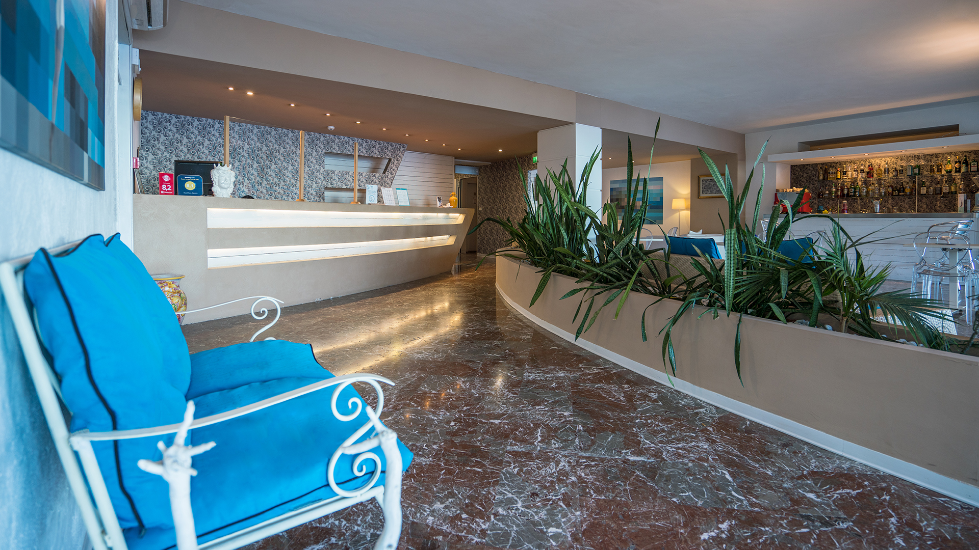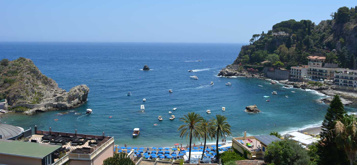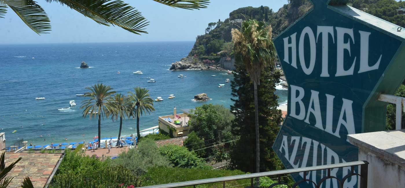 Hotel Baia Azzurra ligger rigtig flot på bjergskråningen og kun 100 meter fra vandkanten og ned til bugten ved den hyggelige sicilianske by Taormina. Hotellet har vidunderlig udsigt til bugten og byen fra sin fine terrasse. Hotellets restaurant er også med fantastisk udsigt udover byen, og her kan man nyde et let måltid eller en kølig forfriskning.