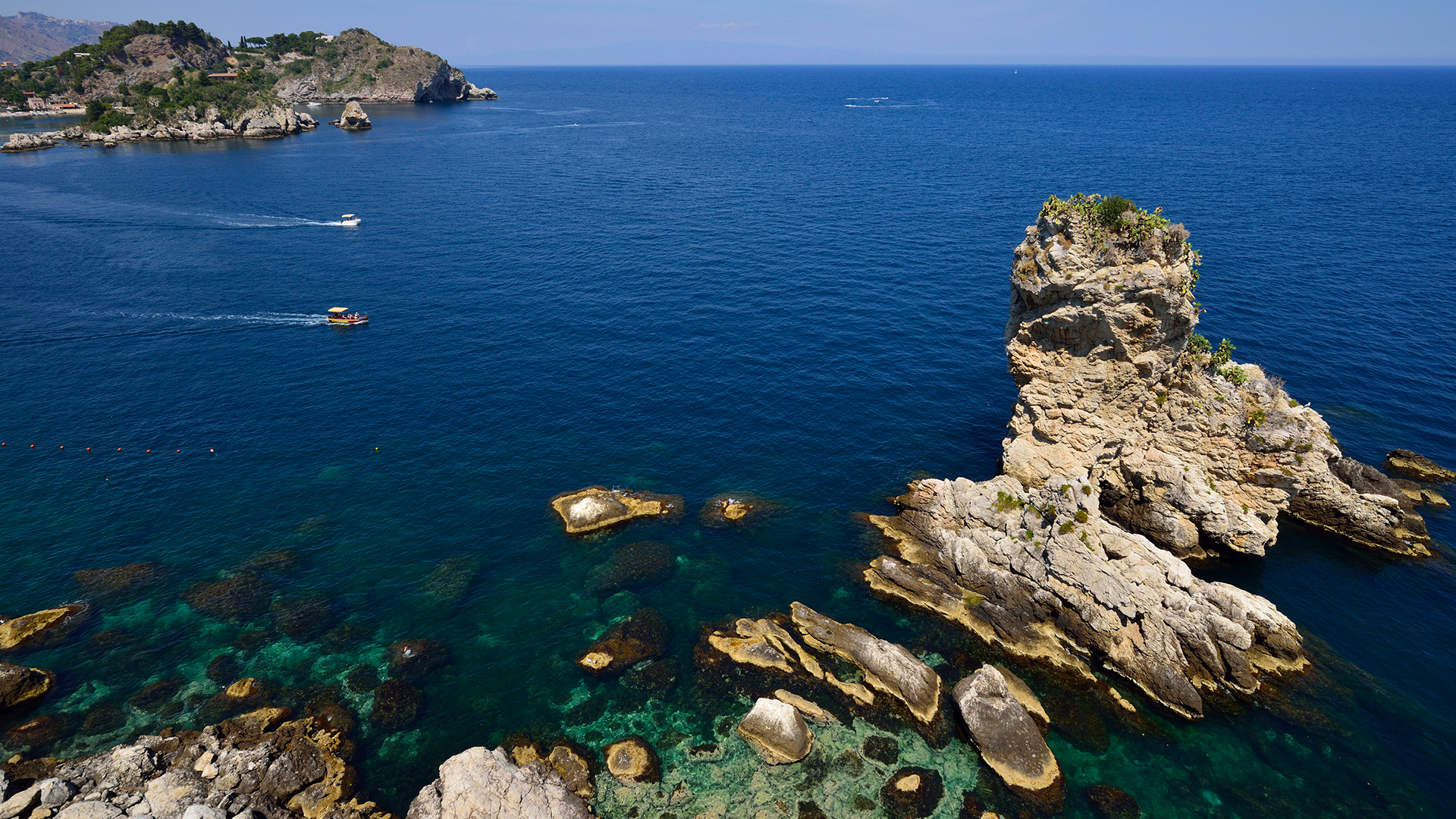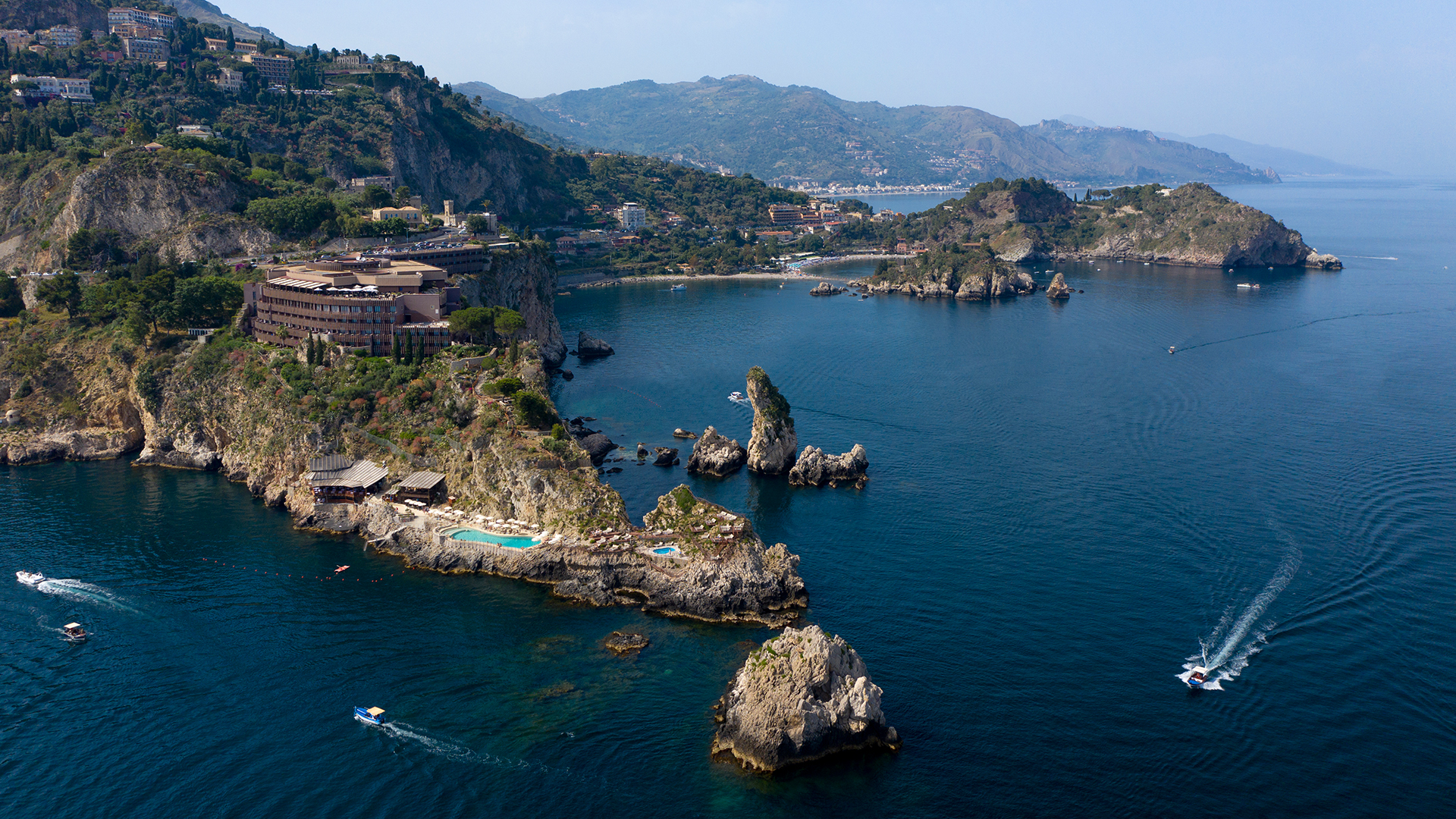 Hotellet ligger langs Giardini Naxos-bugten som ligger lidt længere syd end Taormina centrum, herfra har du kort afstand til flere kendte seværdigheder som findes i centrum. Atahotel Capotaormina er et moderne hotel med særpræg og gode facilitetsudbud.