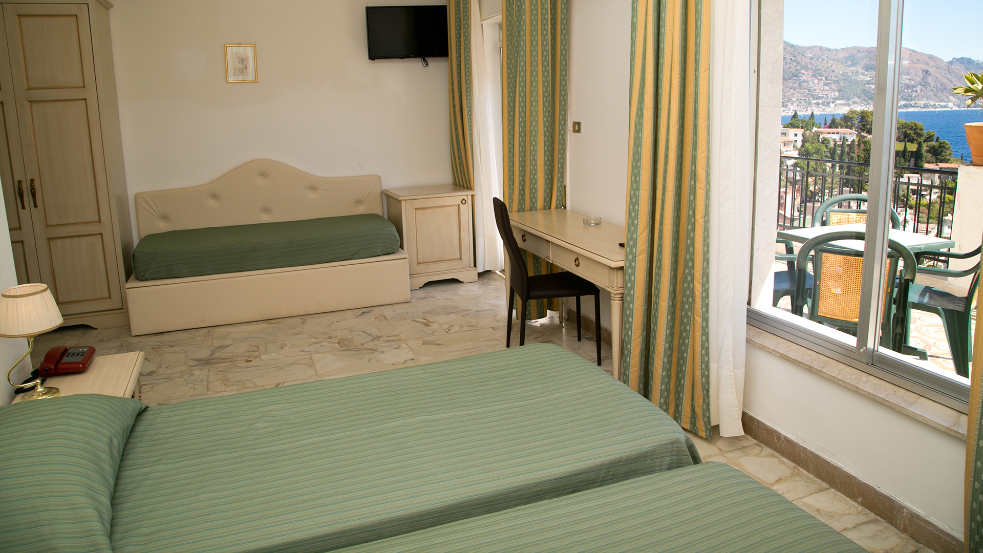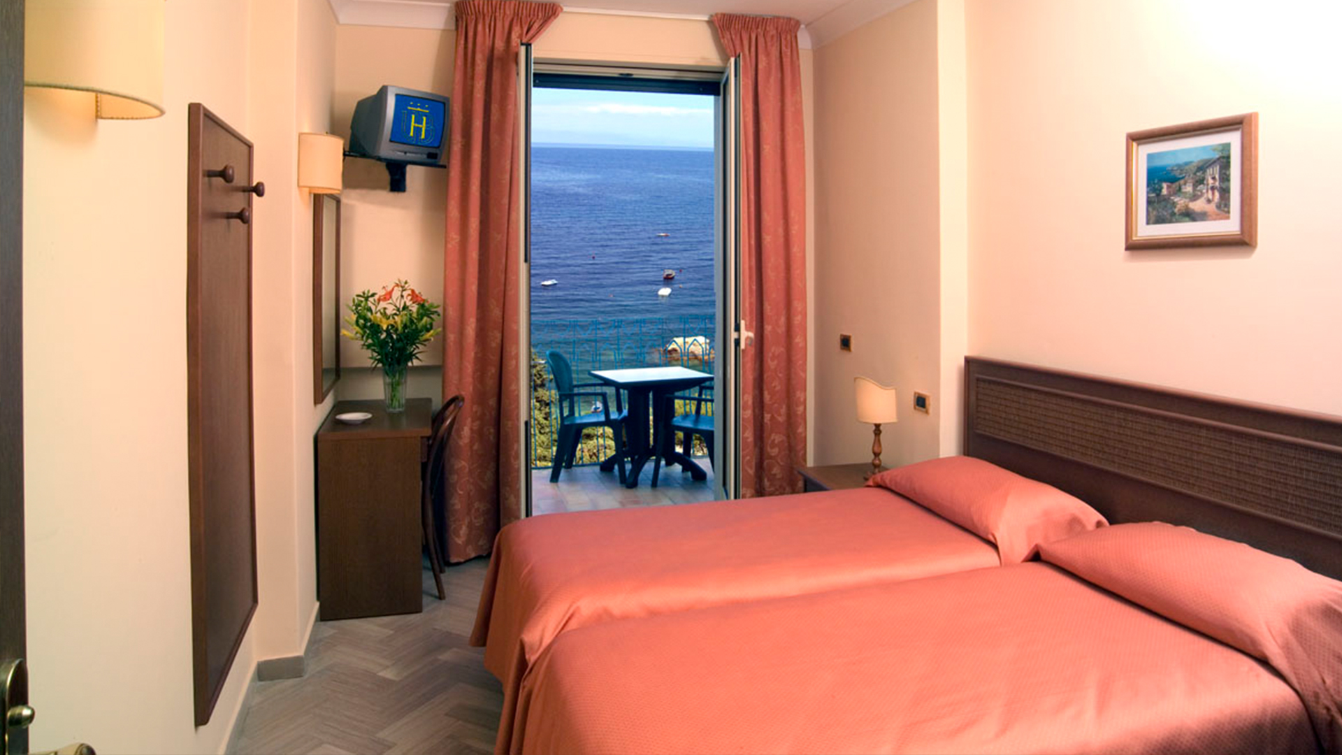 Dobbeltværelse med havudsigt og balkon for 2 personer med mulighed for ekstraseng til 2 personer.