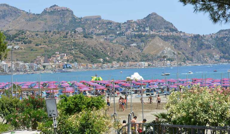 Giardini-Naxos er et hyggeligt feriested på Sicilien som har vokset fra at være en lille fiskerlandsby i 70’erne til et knaps så stort, men velfungerende rejsemål. På den gamle fiskerhavn leveres der fisk i en pulsende atmosfære, der bringer dig tilbage i tiden. Her føler du på det sicilianske hverdagsliv og nyder dejlige soldage ved den familievenlige og lange strand. Det er her solen står op over havet og starter sin rejse over himlen.
